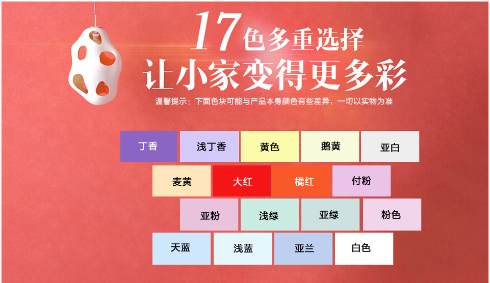 顏色:白色、黃色、耦荷、果綠、粉紅、天藍等17色多重選擇
