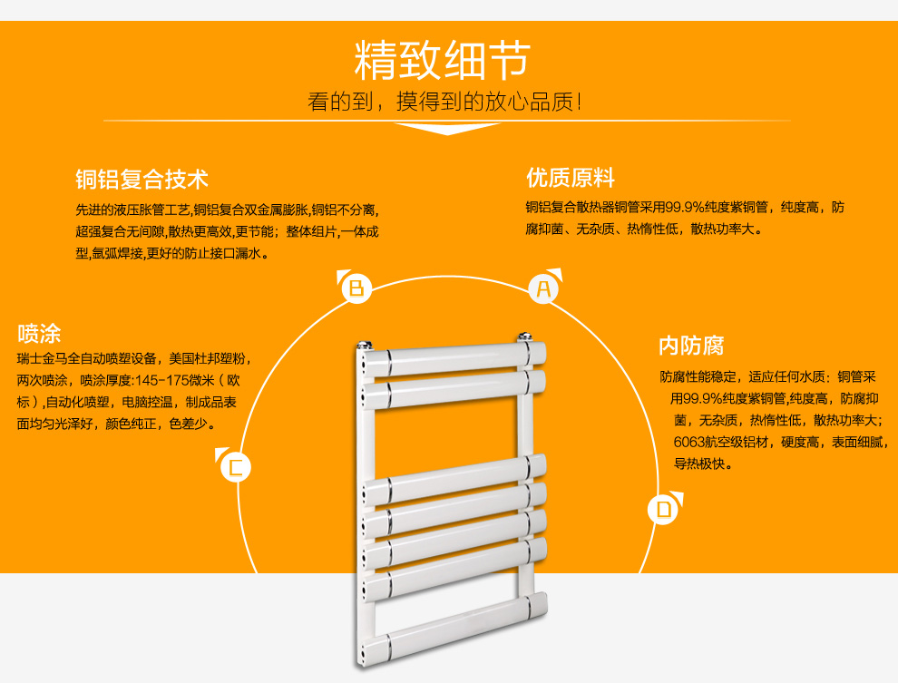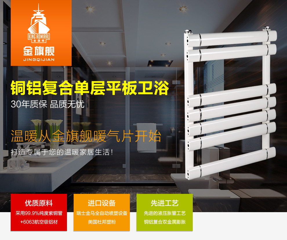 歐洲標準工藝流程:18道工藝成就細節的完美。奧運工程采用:金旗艦攜手奧運,全力打造精品采暖工程幾百萬家庭見證。綠色、環保、健康:金旗艦采暖專家,給您和家人360度溫暖呵護。